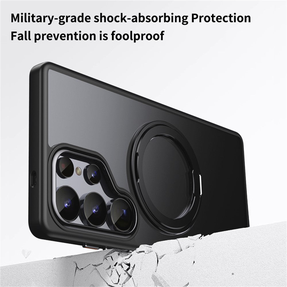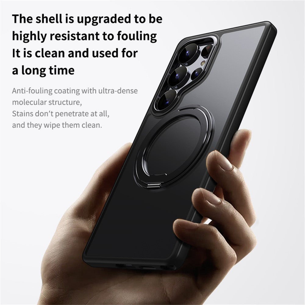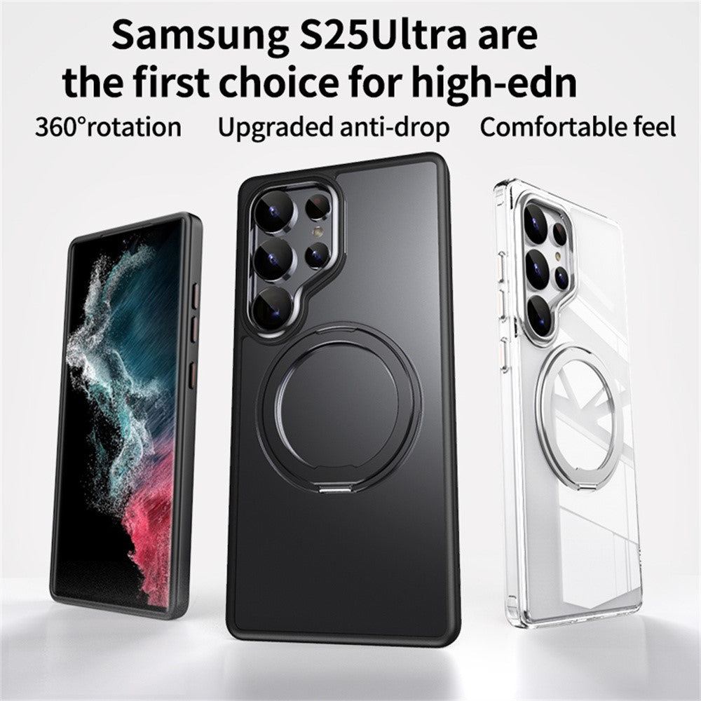 For Samsung Galaxy S25 Ultra Magnetic Case TPU + Acrylic + Metal Kickstand Matte Phone Cover